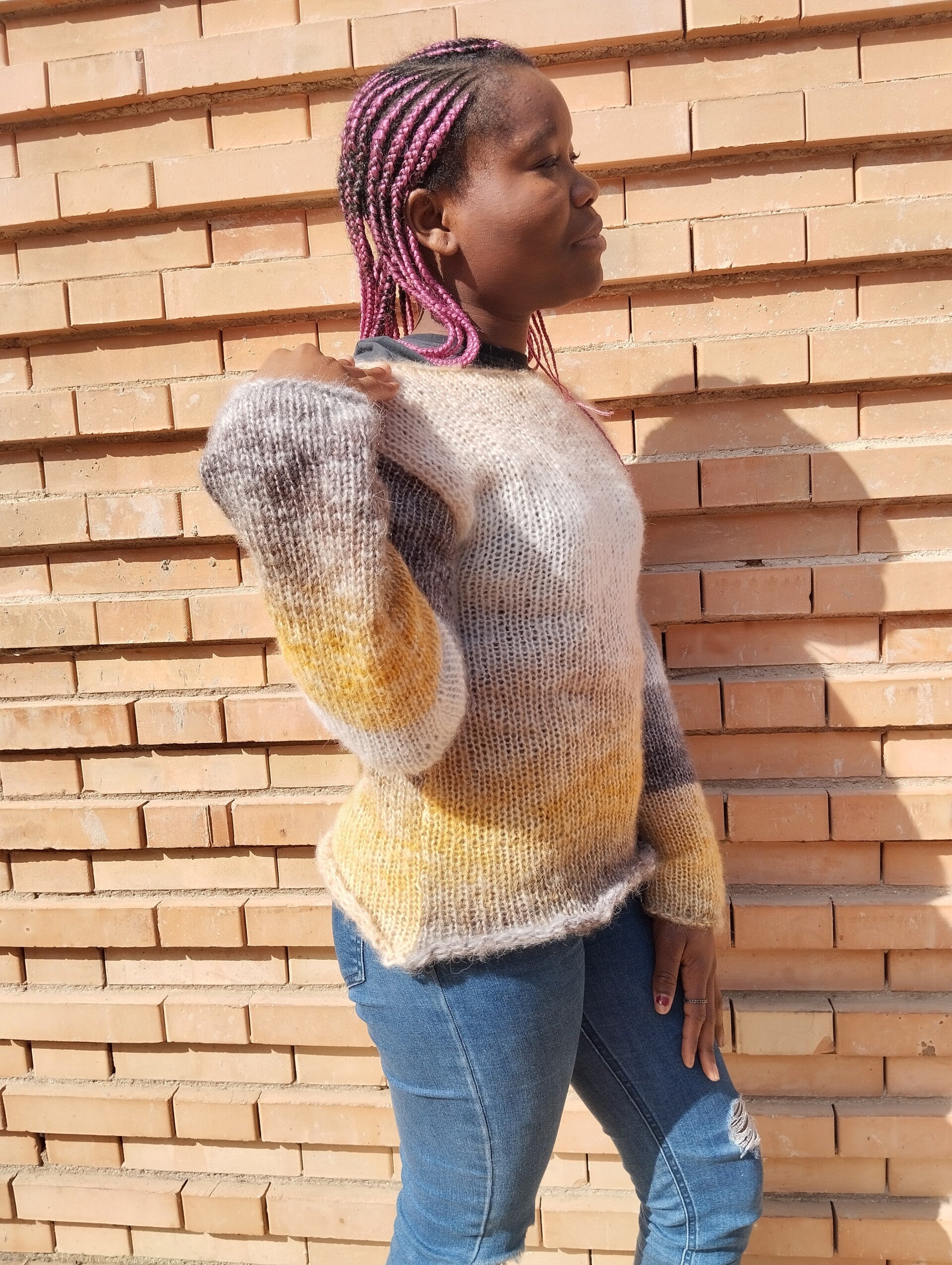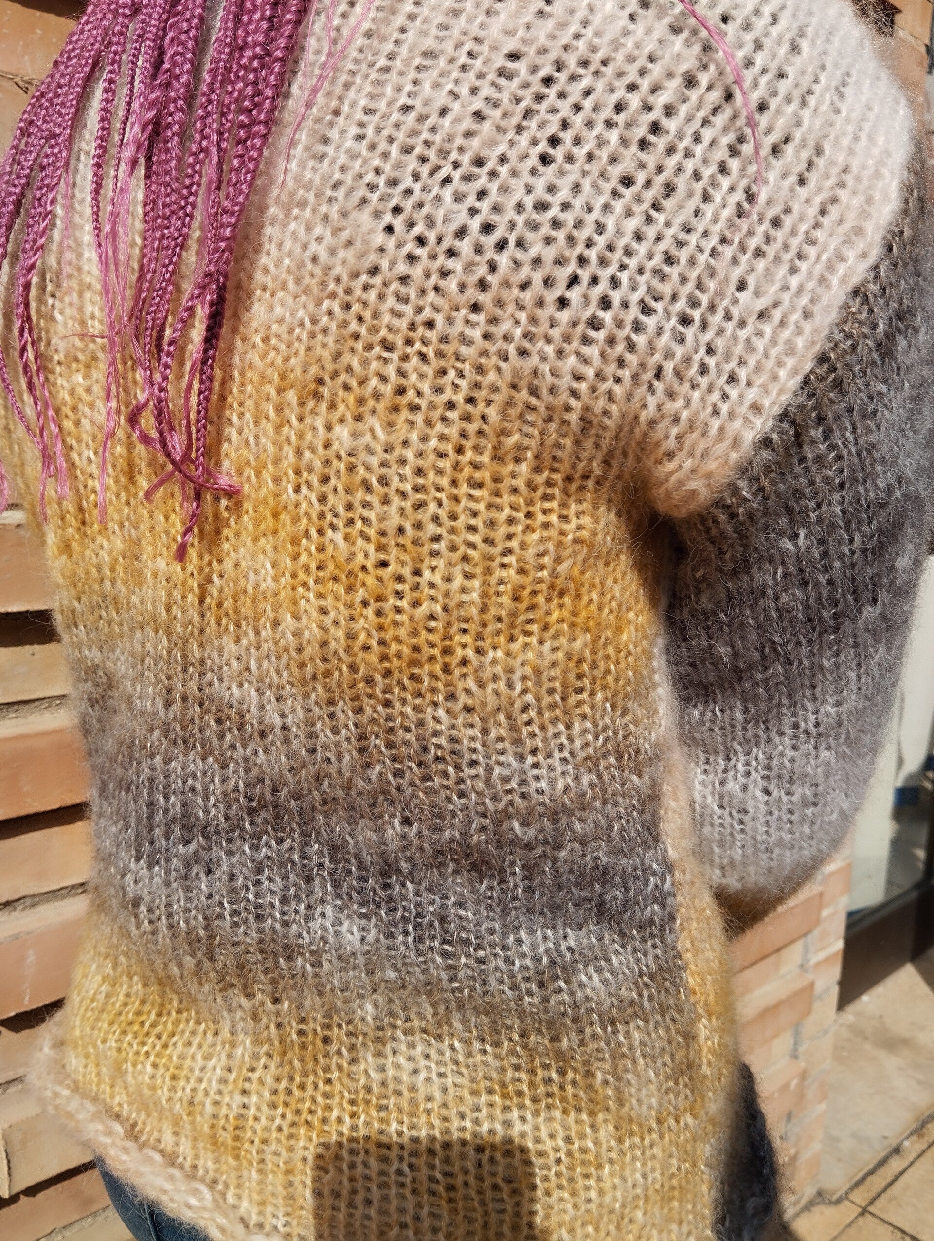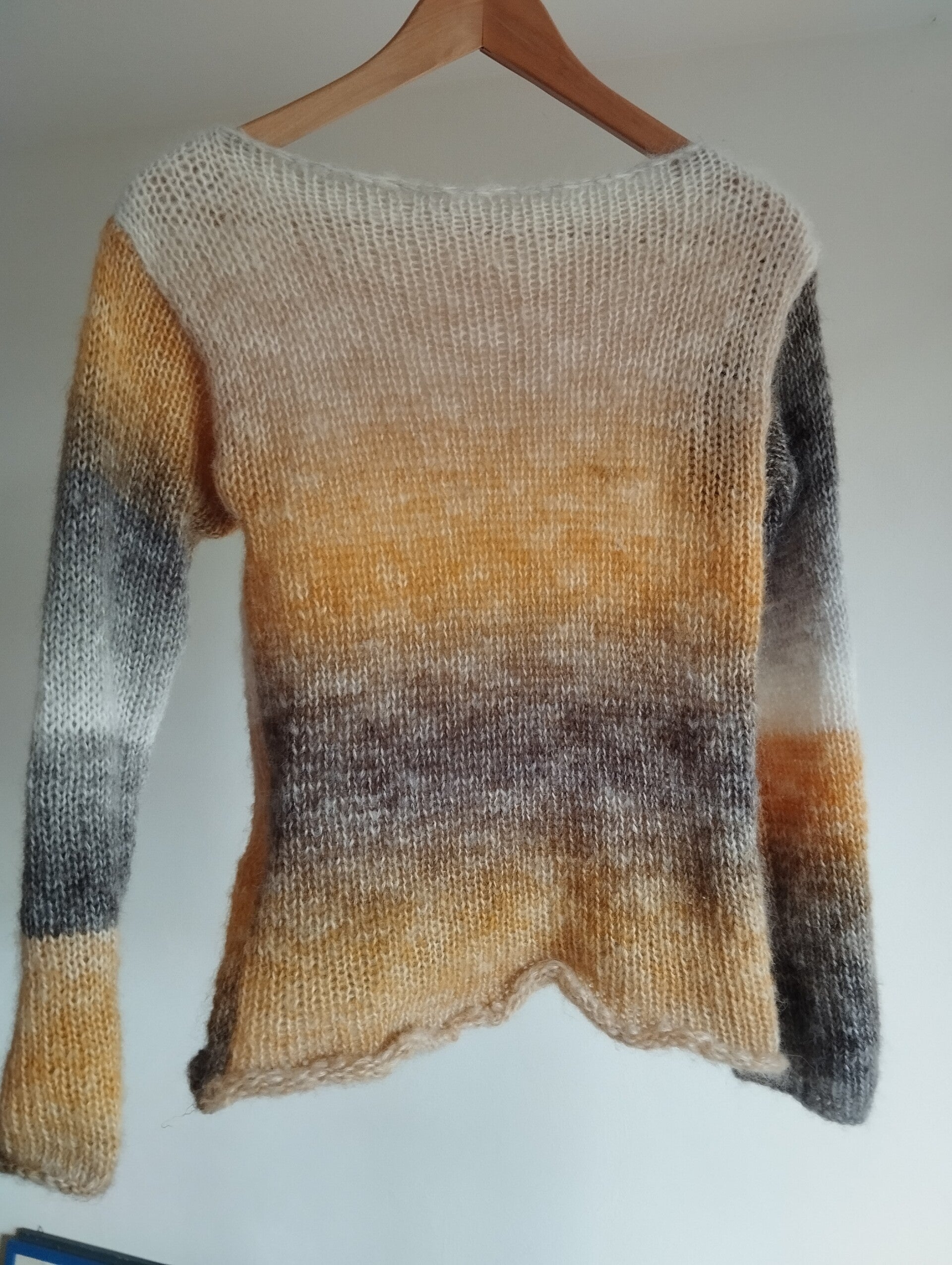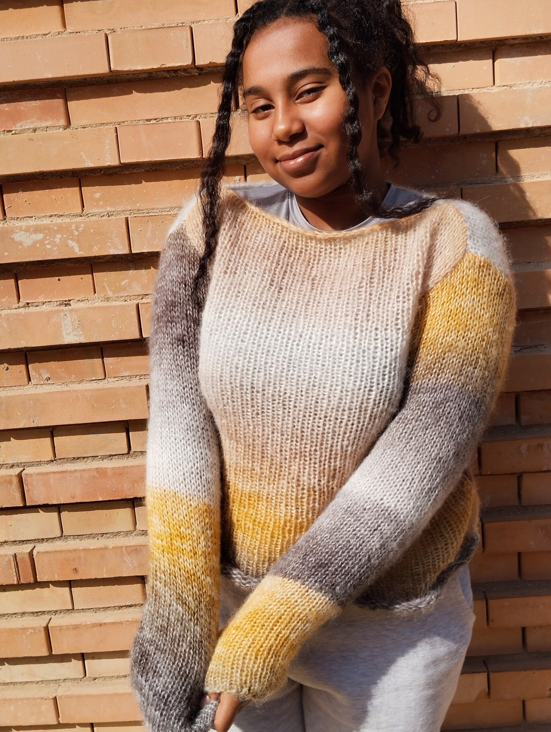 Un maglione dai colori sfumati che ci ricorda il sole, il ghiaccio e la terra.