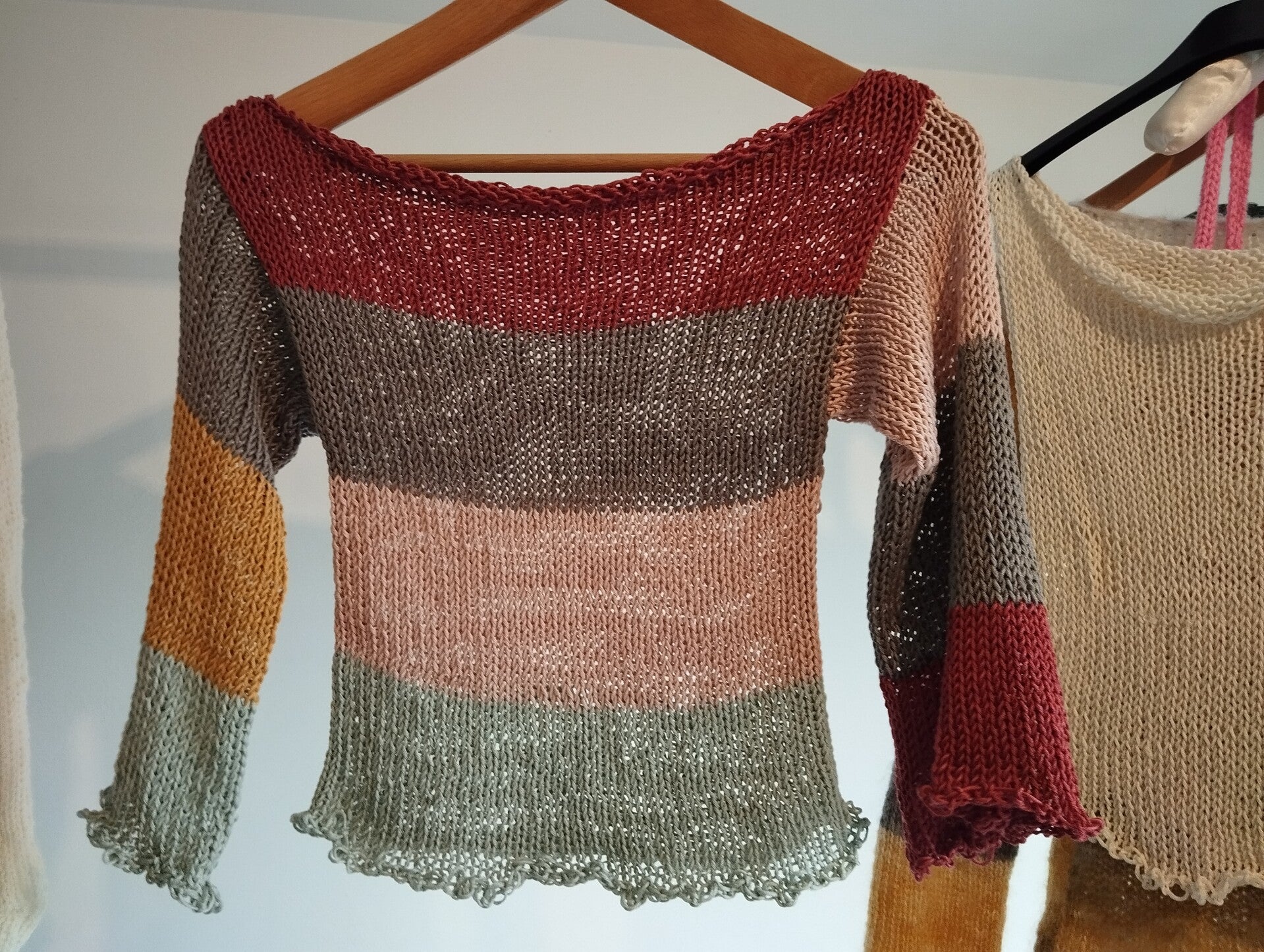Una maglia con colori difficili...rosso vinaccia, verde militare, azzurro acquamarina, rosa pallido...ma come si chiamano questi colori?